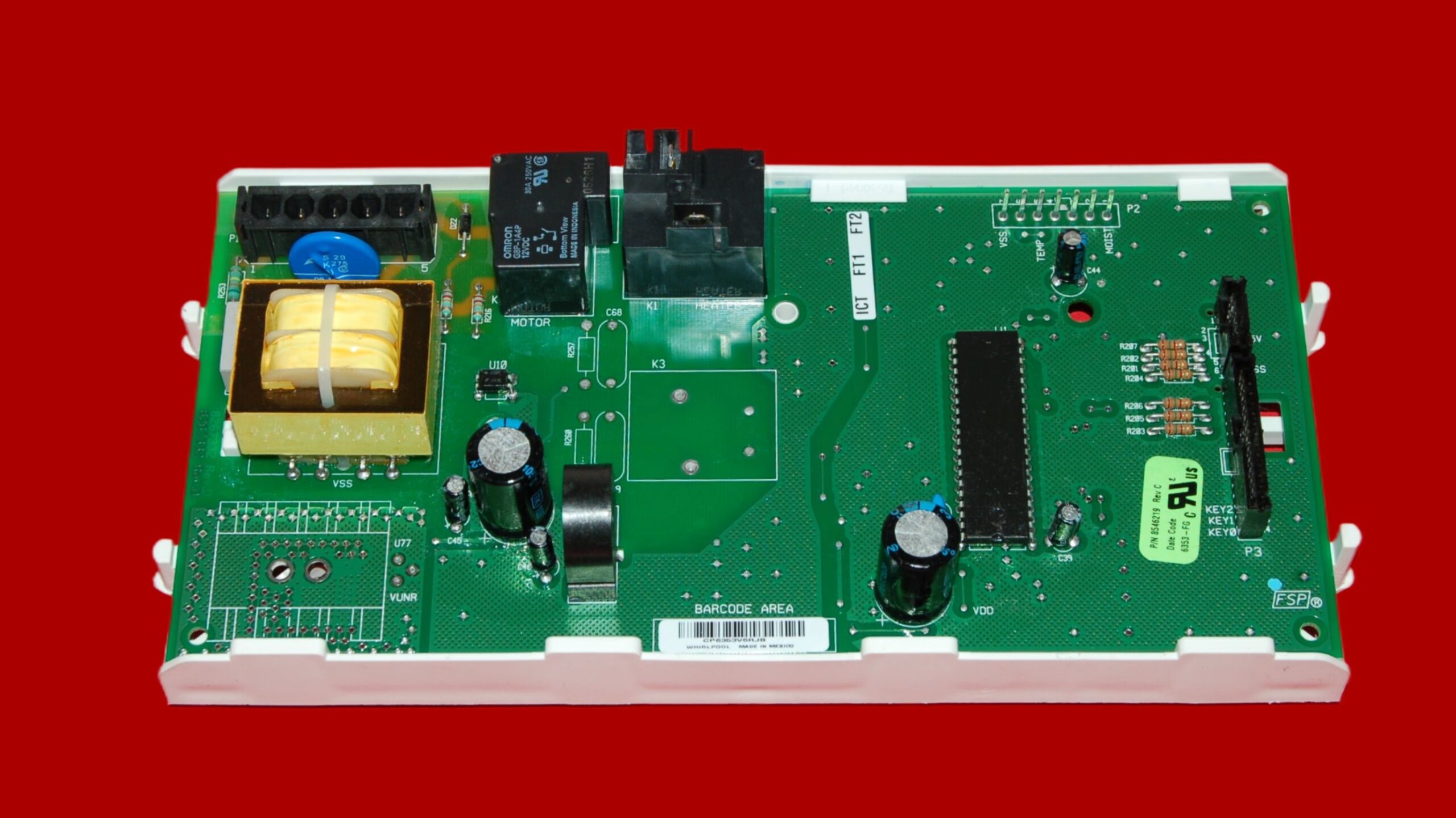Compatible Control Board Part #: WP8546219 replaces AP6013143, 8546219, 1060737, 3978889, 3978917, 3978918, 3978918R, 3980062, 3980062R, 661653, 8546219EXCR, 8546219R, 8557308, 8557308R, PS11746365.